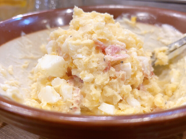 初めは粗目でジャガイモの食感残して、そのあとはもう少し細かめに崩して完成。