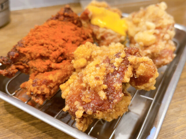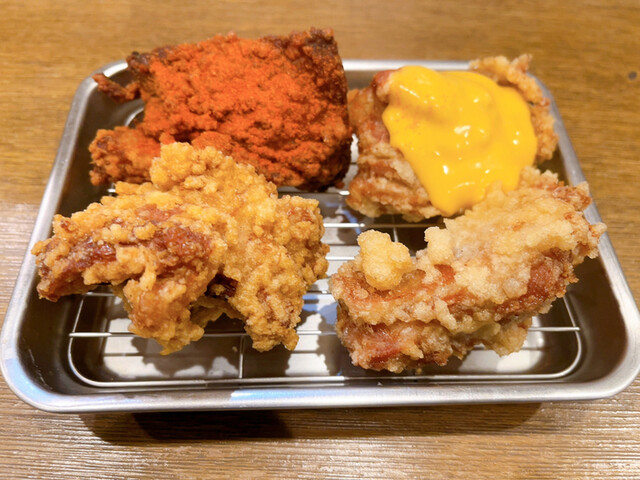 おまかせでザンギ4つ盛り合わせ。塩、醤油、チーズ、ホットの4つでした。