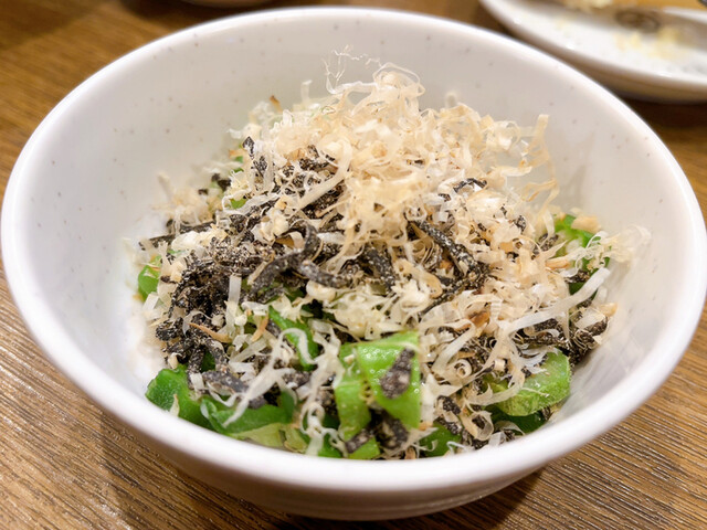 輪切りにしたオクラに、塩昆布、鰹節をたっぷり。