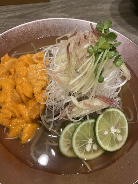 その汁がウニの甘さを引き出して、アクセントの茗荷が抜群に合うね!