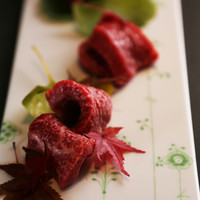 春、秋に解禁日を迎える桜海老は一度揚げる事で海老の香りいっぱいの土鍋ご飯に。甘味たっぷりのとうもろこしはチーズと合わせた風味豊かな天ぷらで。秋の味覚、松茸はシンプルに焼いて酢橘と一緒に、もちろん土瓶蒸し、土鍋ご飯でも。北の冬の定番、真鱈の白子は軽く炙り柚子の香りを添えて茶碗蒸しと。このような一品料理と厳選した最優良なお肉が愉しめる既存の焼肉店には無いお任せセットでございます。