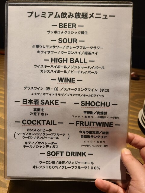 飲み放題は2種類あるうちのプレミアム飲み放題がついてきます。