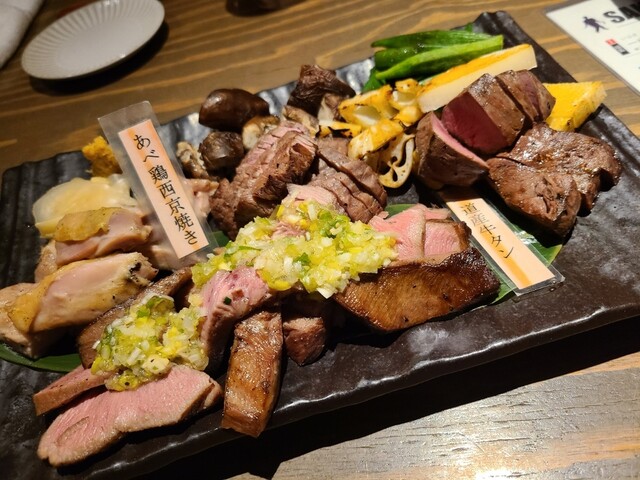 ・真空低温火入れ肉盛り4種と野菜の炉ばた焼