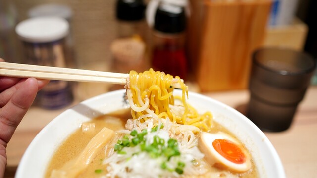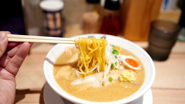 いらっしゃいまし。 ---------- 2020.03 ---------- レモサワ(= ´∀´)ノ凵゛ 濃厚味噌ラーメン 白湯100%のダシはとろっとした口当たりに濃厚なコクと旨味とに味噌の風味が後を引く プリプリなちぢれなたまご麺の歯応え 香ばしく仕上げたチャーシュは なまらニクアツ とろとろでさらっとした脂身とやわらかい赤身のバラと 噛み応えでた肩ロース コリ... 詳細を見る