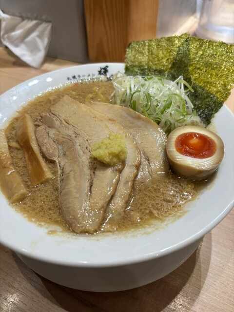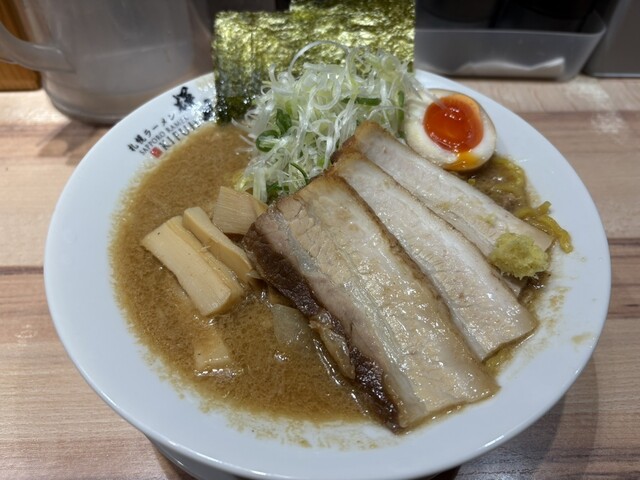 12時を過ぎると気温は5度台の昨今、とてもとても寒い中1時間程度並びました。しかし、こってりした味噌と脂感のあるチャーシューが身体をあたためてくれます。並んでも食べ...