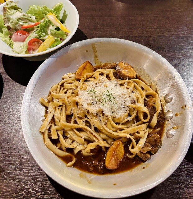 お料理はビーフシチューパスタをいただきました。柔らかい牛肉がたくさん入っていてこちらも大変美味しかった。