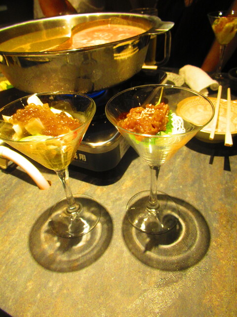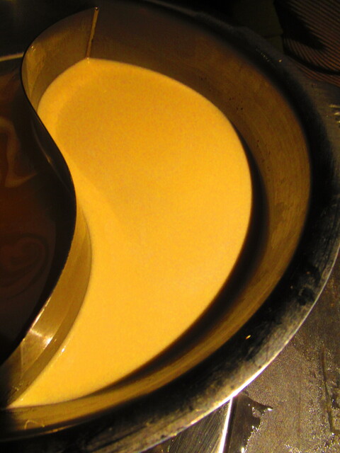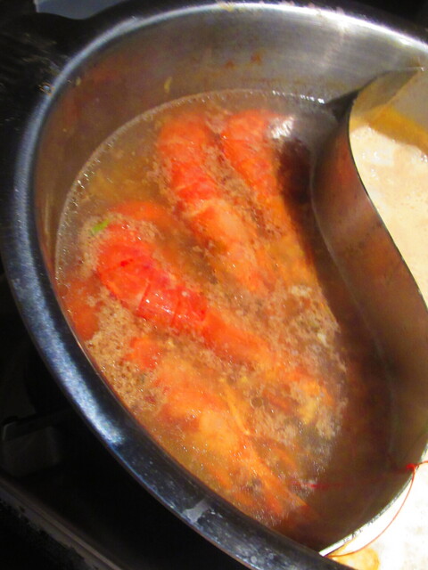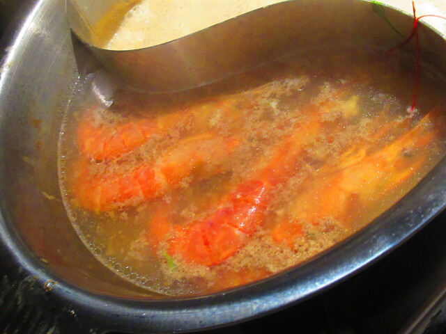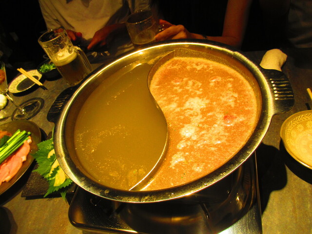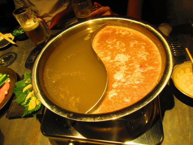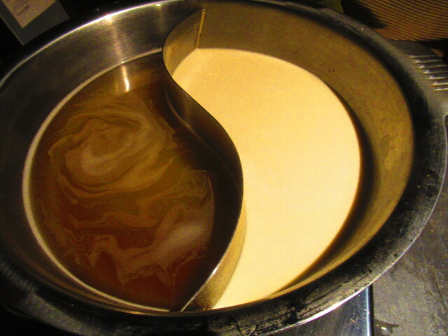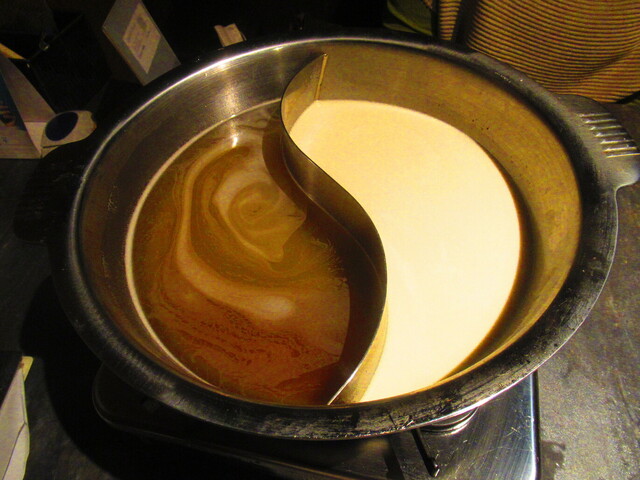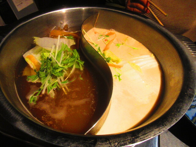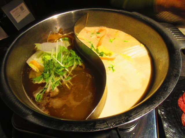 2種類のスープが入った鍋と、野菜が登場。