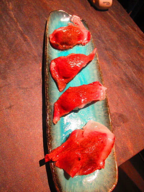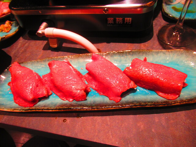 「道産和牛ブリスケの炙り肉寿司4貫 2099円」も、オーダー。