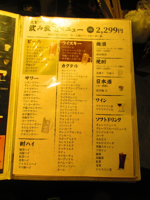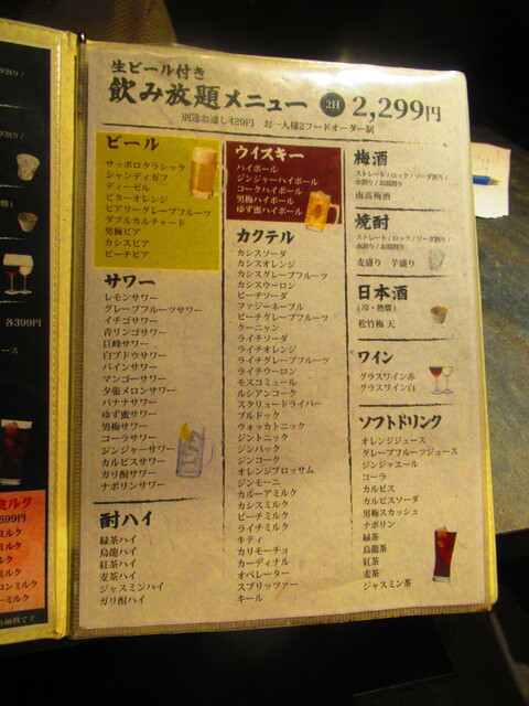 | コース | 飲み放題、3時間以上飲み放題 |
