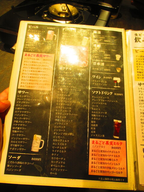 私は随時、「まるごと果実サワー類 699円」をオーダーした。
