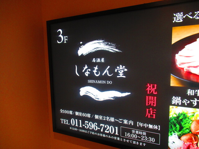 いつもの同行者や友人たちと、「しなもん堂・すすきの店」に変更後の初訪問をした。