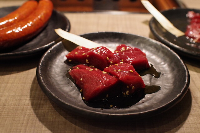 食べログから予約して来訪。3割ほどの客入り。予約無しでも入れたかな?店内は割と広く半個室からオープンな4人掛けのテーブル席などがありました。2人で来店しました。半個室のテーブル席へ通されました。注文はQRコードを読み取って注文するスタイル。まずは羊のお肉から。とても柔らかくて脂身もありとても美味^_^シカ肉はお肉の味が濃くて柔らかく美味^_^熊肉はあっさりとしていてクセがなく食べやすい。どのお肉も...