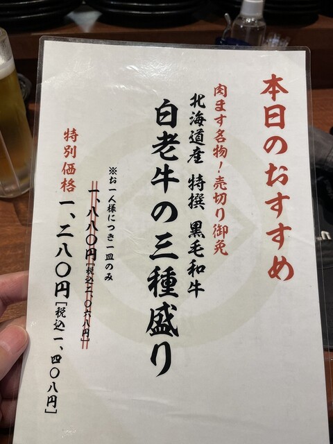先日名古屋の北海道物産展で白老牛とゆうものを目にしたけど食べ損ねたのでちょうどいいと思いふらっと入ってみた^ ^
