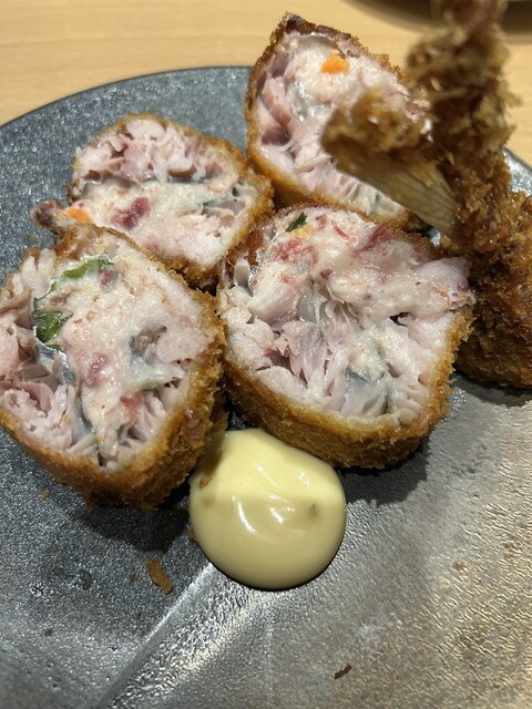 以前行った事があるお店。 1回目はコースで注文したので今回は単品で好きなものを。 お通しはタコでした。 お酒に合います。 お刺身は3点盛を。 厚みがあって食べ応え... 詳細を見る