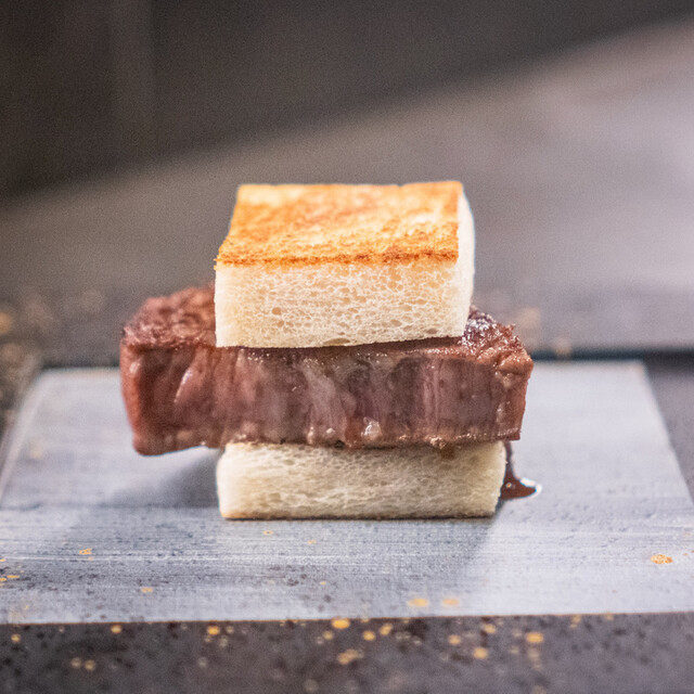 メインは【北海道産黒毛和牛のシャトーブリアン】脂肪分が少なくキメ細やかなサシと最高の肉質のヒレ肉を(焼き、低温調理、炙り)の工程を経て丁寧に焼き上げ他では味わうことの出来ない【食感、香り、旨味】を感じることができます。