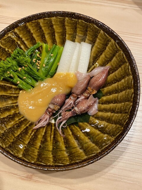 菜の花と白ウドとホタルイカ酢味噌