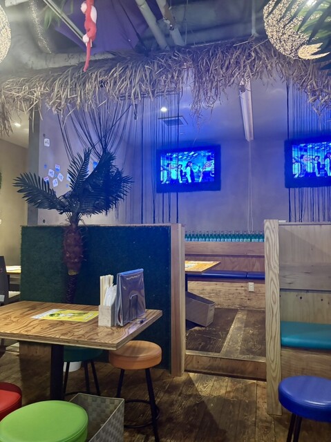| 空間・設備 | オシャレな空間、カウンター席あり、ソファー席あり、カラオケあり、スポーツ観戦可、プロジェクターあり、電源あり、無料Wi-Fiあり |
