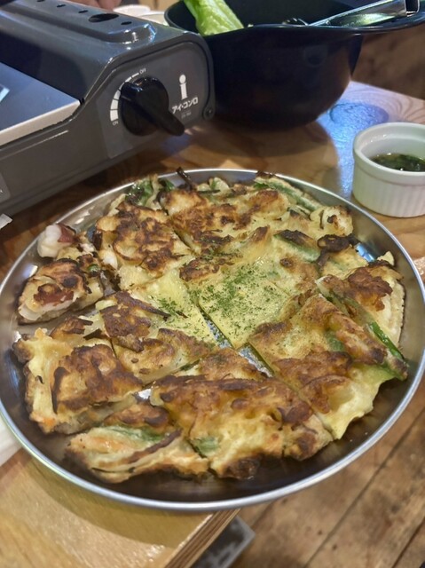 韓国バルという事で、店内は韓国アイドルのMVが流れ、内装や雰囲気も良き。 今回は食べ飲み放題5000円コース 前菜5種は主にキムチやカクテキ、韓国海苔と漬物系でした。 サムギョプサルとチーズダッカルビ、エビロール 海鮮チヂミ、 〆のポックンミョンです。 サムギョプサルとチーズダッカルビは... 詳細を見る