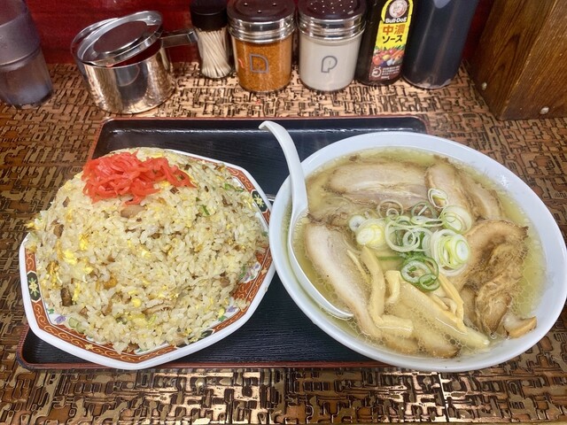 13時50分頃に訪問 並ぶの覚悟で訪問しましたが、タイミング良く カウンターに直ぐ座れました。 ラーメン付きチャーハンを注文 ラーメンは塩 隣にいた外人さんがチャーハンを器... 詳細を見る