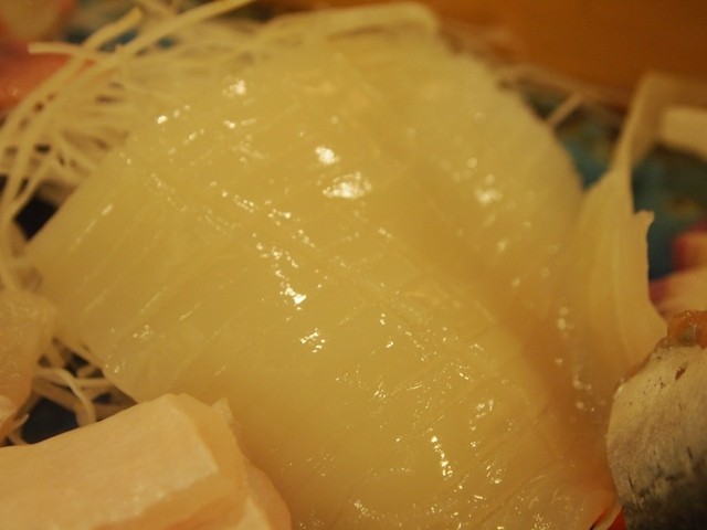 まずはカウンターの席につき、ビールとお刺身盛り合わせを注文。注文を受けてからしっかり作るお刺身は大変美味しく板さんの眼差しや言葉もいい感じ。壁に貼ってあった焼き蛸が気になり、注文すると固形燃料と共に鉄板焼きのようなものがカウンターに。焼いたタコは風味、歯応え、味も絶品。