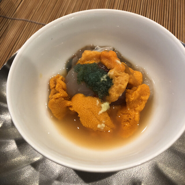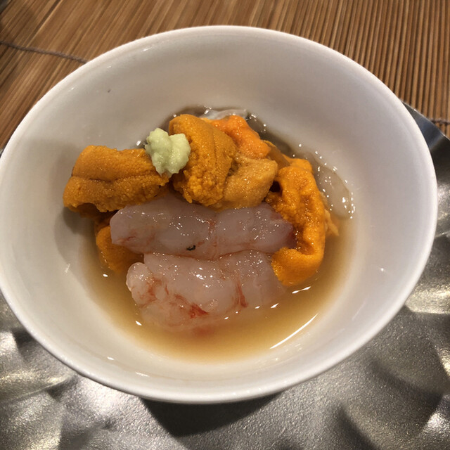 ねっとりとしたボタンエビの甘さ、みそとウニが混ざってさらに美味しいです。ウニも甘くてNICEです。