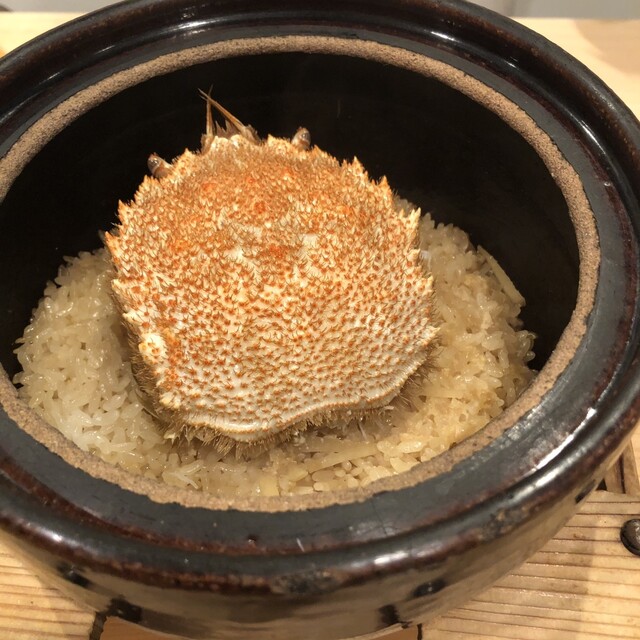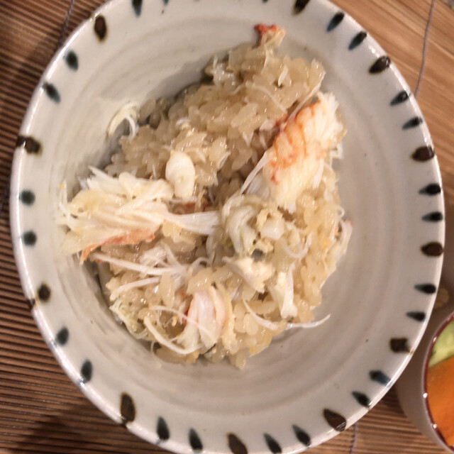 最近訪問した別のお店でも毛蟹の炊き込みご飯でした。笑