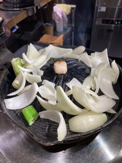 ビールで成吉思汗を食べ進めていきますが、野菜の玉ねぎが減りません、苦しい…