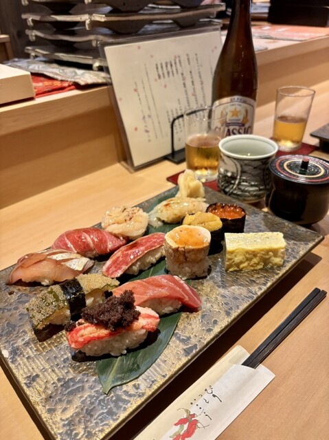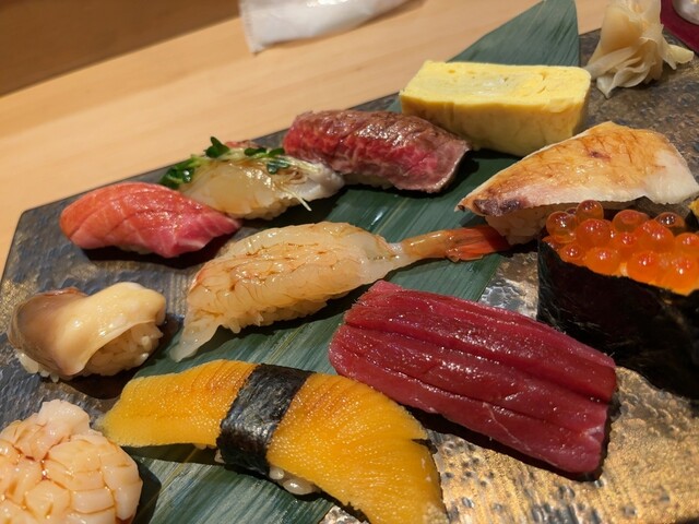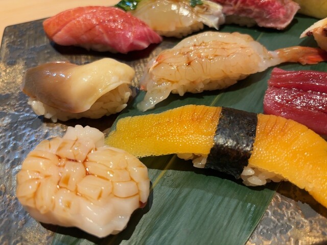 北海道産を中心の握り寿司10貫をご提供ランチとは異なる熟成ネタやひと手間仕事をした握りが堪能でき、握りがメインで鮨を堪能されたい方には旬のコースをご用意しました。 ※追加料理も承っております。遠慮せず声をかけてください。