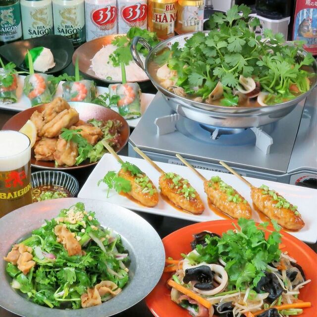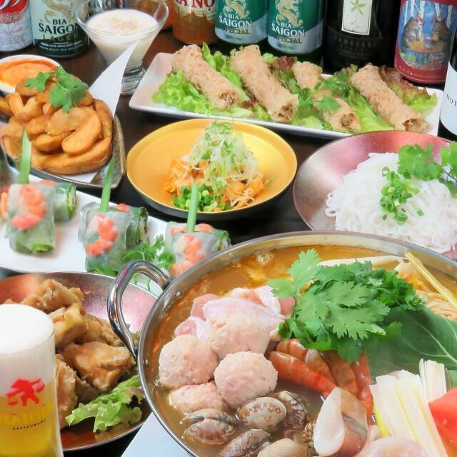 「海鮮とお肉たっぷりのベトナム鍋付きコース生ビール付き120分飲み放題全8品5800円」がおすすめです。