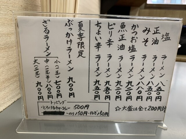 平日のお昼に同僚と利用しました。魚正油ラーメンを注文したのですが、スープはお醤油の中では、ちゃんとこってりしていて、そのスープが細麺に絡んで美味しかったです。機会があったら今度はかつお塩ラーメンを注文...
