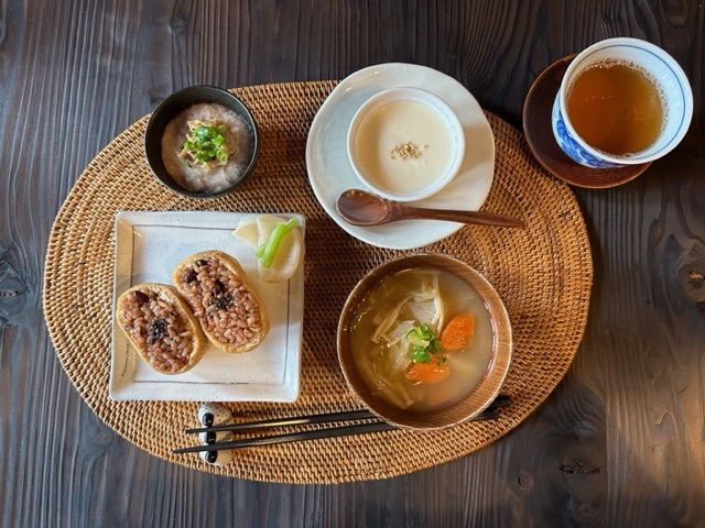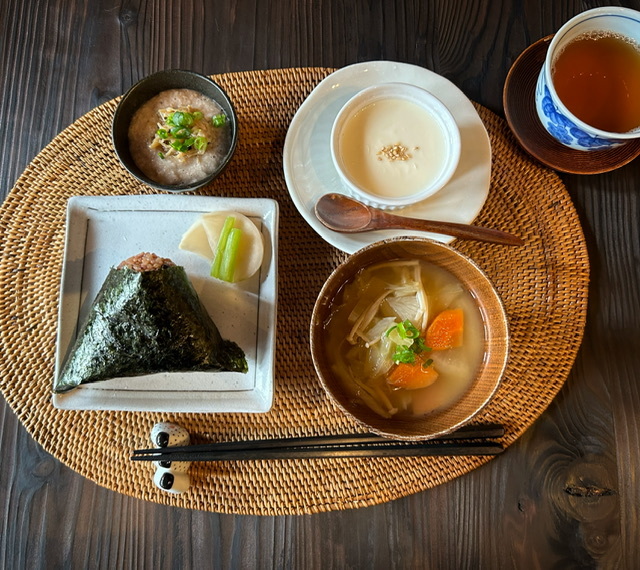 動物性のお出汁を使用していない味噌汁やおにぎり、副菜のご用意がございます。