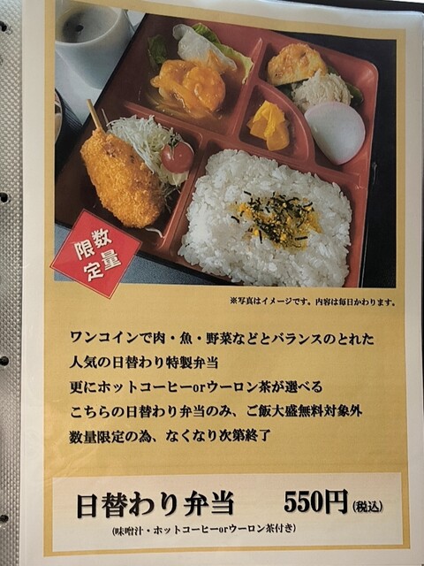 コーヒー付きの日替わり弁当が品切れ残念…