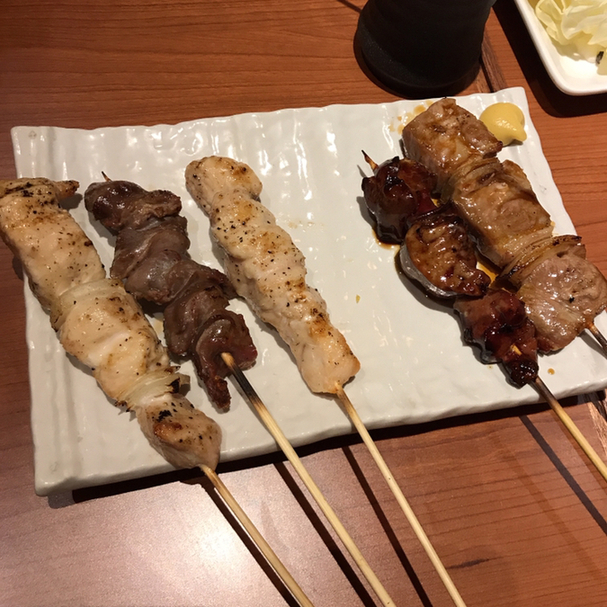 むね(塩) 砂肝(塩) ささみ(塩) レバー(タレ) 室蘭やきとり