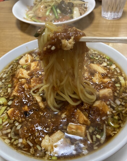 レモンサワーをもらって、チャーハン、麻婆豆腐(ハーフ)、豚肉と玉子とキクラゲの炒め(ハーフ)...