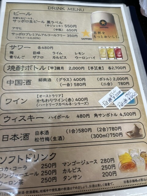 この日は黒板メニューはなくレギュラーメニューのみ。