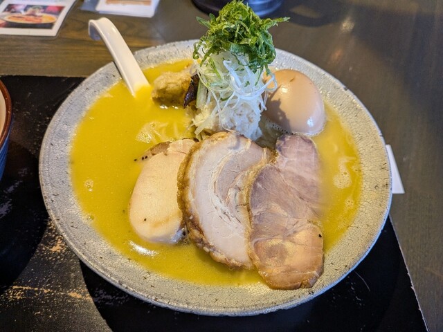 近くの【サッポロビール博物館】に行った後に、妻が買いものしている隙に『芝生で昼寝してる』と言ってコッソリ伺いました。 平日13時半頃入店で店内6割ほどの入店状況。 店内は落ち着いた雰囲気でお洒落。 入口に券売機があるので、そちらで食券を購入。 今回は【帆立鶏白湯】1200円をチョイス。 ... 詳細を見る