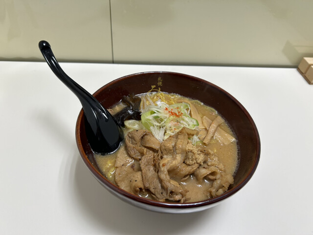 ご近所シリーズ。下手稲通のドン・キホーテがある交差点近くの建物の一階に入っています。 土曜日のランチタイム。先客5名後客無し。そのうち4名は直前入店のため、着丼まで待たされる... 詳細を見る