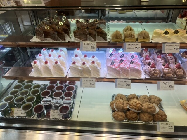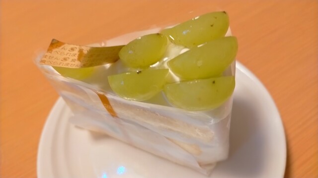 イオン発寒店に買い物に行き、もりもとの前を通ると、シャインマスカットのショートケーキとまるごと桃が美味しそうで、買っちゃいました〜!