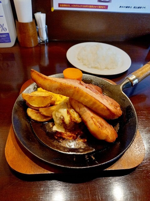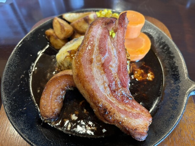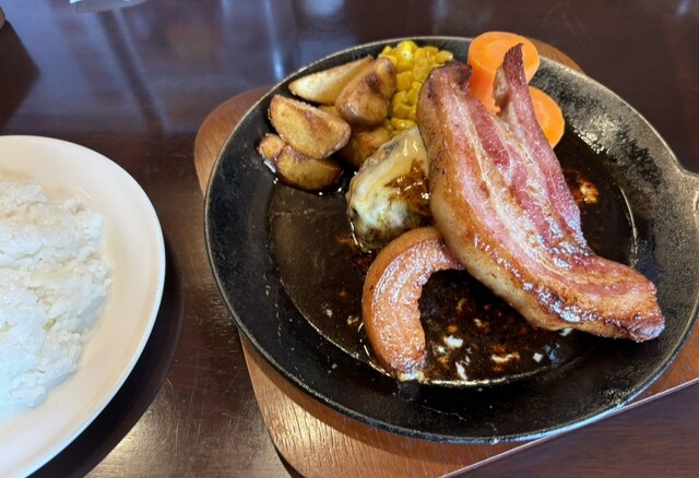 従業員の方に誘導していただき、なんとか駐車を済ませ、念願だったチーズベーコンハンバーグを注文。 まず圧倒されるのはベーコンの存在感。厚さは約1cmで、もはや「ベーコンステーキ... 詳細を見る