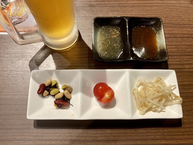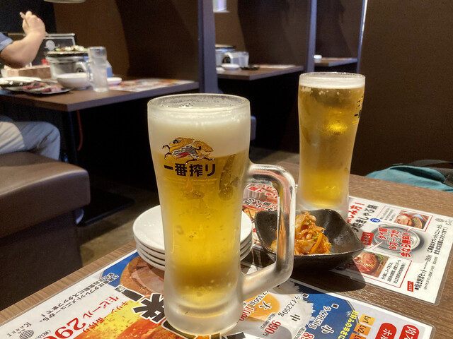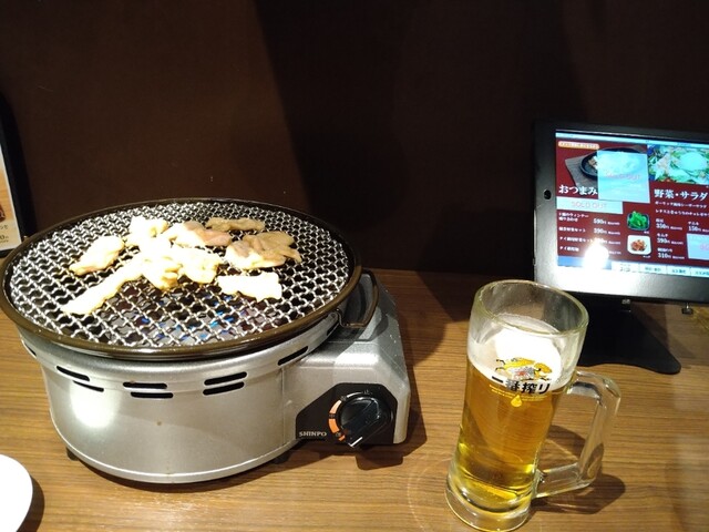 今週は半額、珍しく夫が行きたいと言う。めったに無いから行きましょう。2階への階段を上がり、すっかり昔の喫茶店の面影も無くて…二人横座りのテーブル席に案内されます。ちと狭い。コートとバッグも足元の籠に入れてもチョット二人だと狭い。注文はタブレット、先ずは人数入れて、ドリンクメニューから生ビール2を注文。お肉は…牛盛り合わせ、ホルモン。牛タン、サガリ。ビールが来た、ホルモンが、きた。じゃんじゃん焼いて...