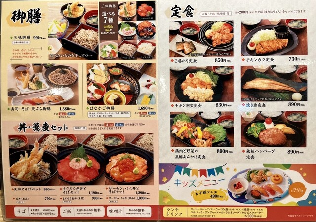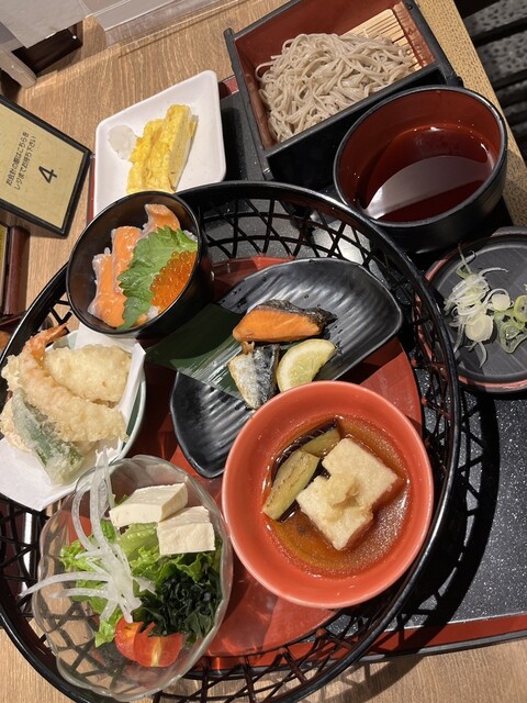 店前を通りかかったら、ランチにかなり力を入れていると感じるメニューだったため超絶久々に入ってみた。某和風ファミレスと近いメニューが多いが、うどん蕎麦より魚側に力点が有るようで、自分向きに思った。思い切って、ランチで最も高いメニューを頂く。麺は冷蕎麦だ。