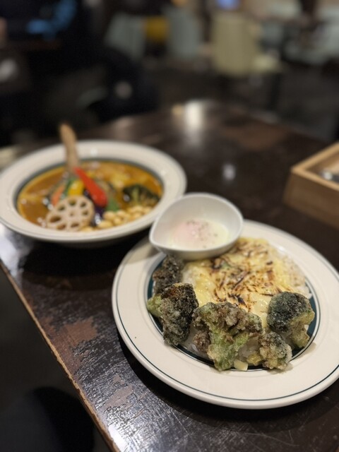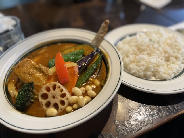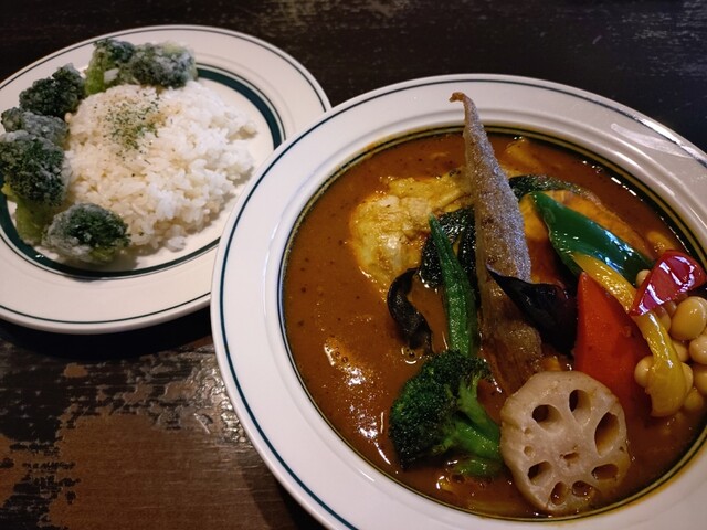 今回は『チキンと野菜』(1485円)をレギュラースープ、辛さ3(辛口の真ん中)、ライスS(-10円)、トッピングは『サクさくブロッコリー』(330...