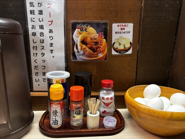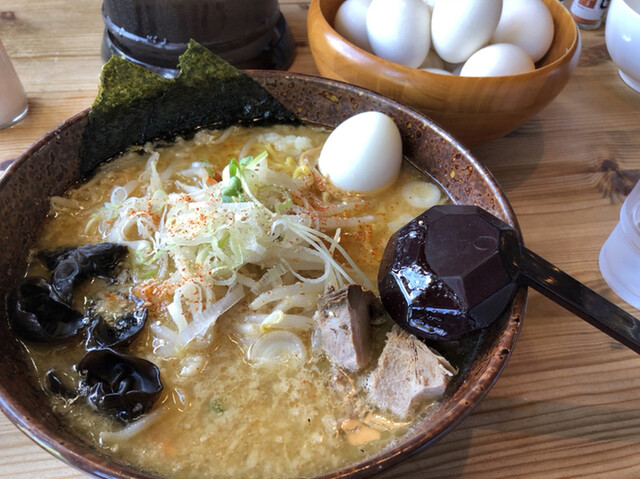 もう20年も前から、美味しいし、卵が食べ放題!と評判を聞き続けてきました。市内の老舗ラーメン店で行けてないお店はここだけでしたので、通るたびに気になっていましたが、お腹すいてないな... 詳細を見る