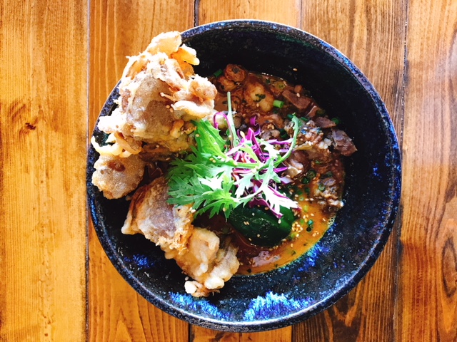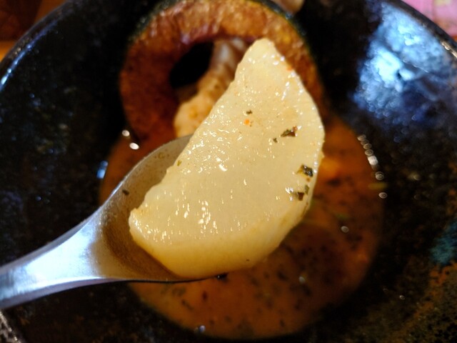 「アジトのような空間に」という店主の想いから高架下という隠れた立地にお店はあります。サブテーマの”温泉”とスープカリーがコラボし、電飾が灯る夜のトンネルを抜けた先はまるで離れの温泉宿。小上がり席があり絵本やベビーグッズも完備されているので、小さなお子様も思わず長居したくなる心地良さです。