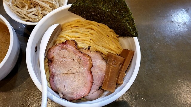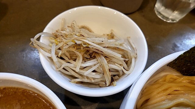 注文した物は味噌つけ麺大盛り、もやしマシ、うずらトッピング。