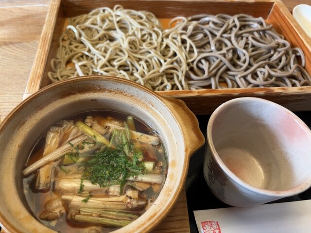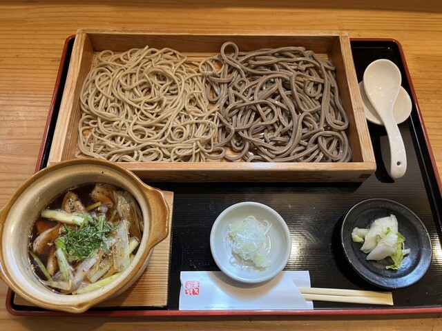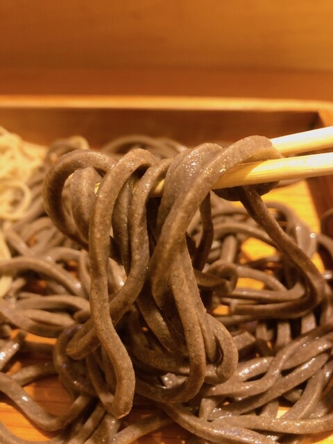 まずは田舎蕎麦から。太打ちで色が濃く、見るからに野性味溢れる佇まいです。一口手繰れば、期待を裏切らない凄まじい弾力。噛み締めるほどに蕎麦の力強い香りが鼻を抜け、穀物としての旨味がダイレクトに伝わって...