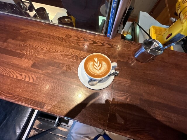 生豆を洗浄した珈琲は冷めても美味しく味わえるのが特徴。カフェラテにはフリーポアラテアート(エスプレッソとミルク以外道具を一切使わないで描く方法)をほどこしています、シルキーなカフェラテ是非体験下さい。 その他、コーヒーによく合う自家製のワッフル10種やそしてピザ3種ご用意。
