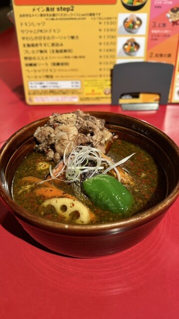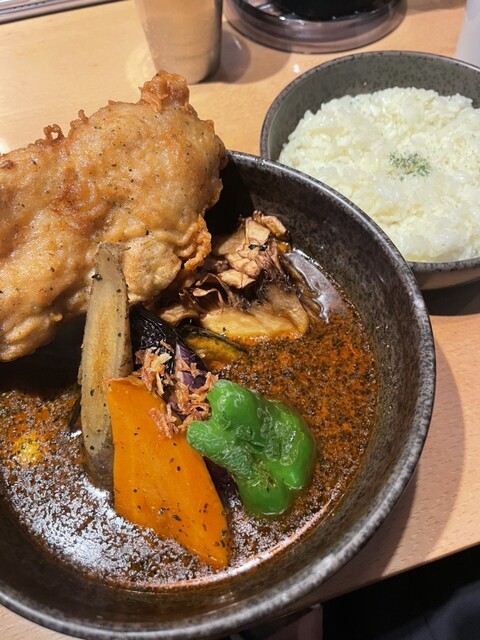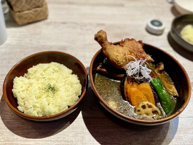 ▪️札幌駅北側、北大キャンパスにほど近いところにあるスープカレーの超人気店。お昼の1時過ぎに伺いましたが、10名程度の行列ができていたため30分ほどしてから入店できました。 ▪️オーダーは以下の手順で行いました (1)カレーを4種類から選択 →「38億年の風」(濃い目のカレー)を選択... 詳細を見る