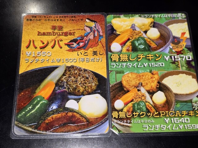 【地下鉄南北線北12条駅から徒歩3分】4種類のスープからカリーを選ぶことが出来るので、毎日来ても飽きる事がありません。一番人気は【38億年の風-サクッとPICAチキン】チキンと、野菜がたくさん入ったカリーです。その他、仔羊や、牛タン、舞茸などちょっと変わった一品もご用意。トッピングの種類も豊富なので、色々な組み合わせをお楽しみください。店内はパーティションで仕切られていますので、周りを気にする事な...くお食事を楽しむ事が出来ます。また、カウンターもありますので、女性お一人でもお気軽に来る事が出来ます。
