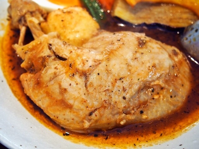 牛骨、豚骨、野菜をアクを取りながら丁寧にフォンドボーのように煮込んだスープと、白濁するまで炊いた鶏ガラのダブルスープ。 こんな洋食仕立てのスープカレーは、らっきょから始まったんじゃないかな? 札幌と言わず全国で見ると、店主のイデゴウさんは、大泉洋さん・スープカレーと言い始めたマジスパの下村さ... 詳細を見る